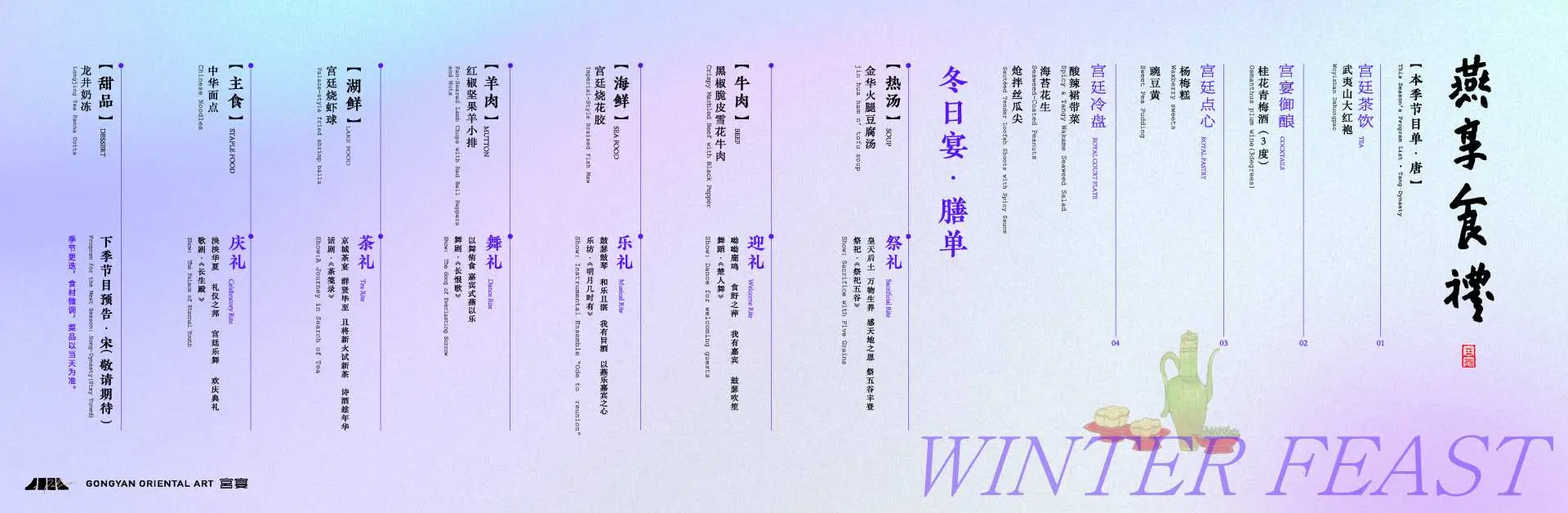 The waiters are dressed in palace maid attire and serve according to court etiquette. Different dining areas are available to meet diverse needs.
