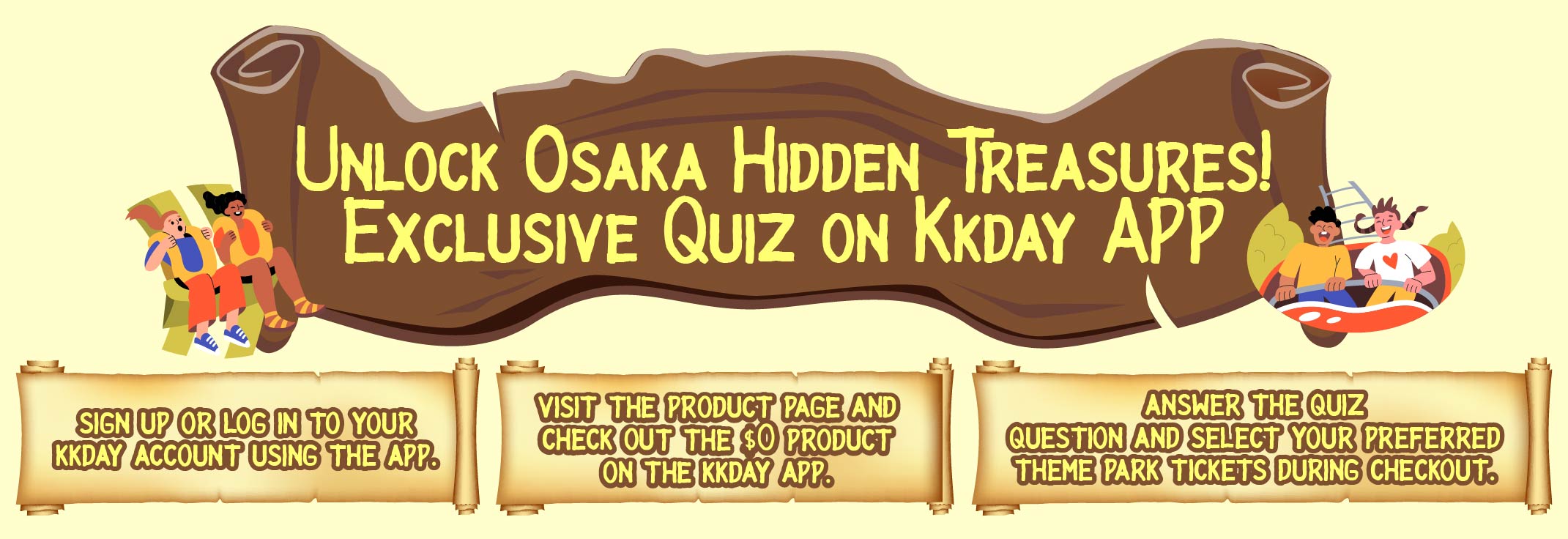 Test your knowledge of Osaka's famous attractions and enter for a chance to win tickets to a top theme park. Participate easily on the KKday app and claim the prize.
