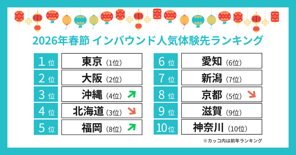 3. KKday、「2026年春節 インバウンド体験先ランキング」を発表。インバウンド消費は成熟段階に入り、旬の絶景や体験をめがけた『目的特化型』の地方滞在へシフト