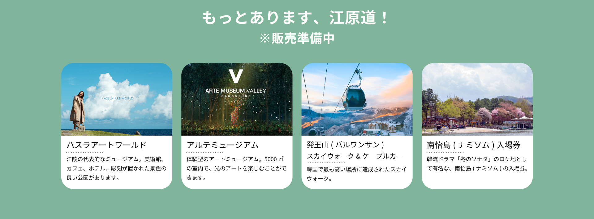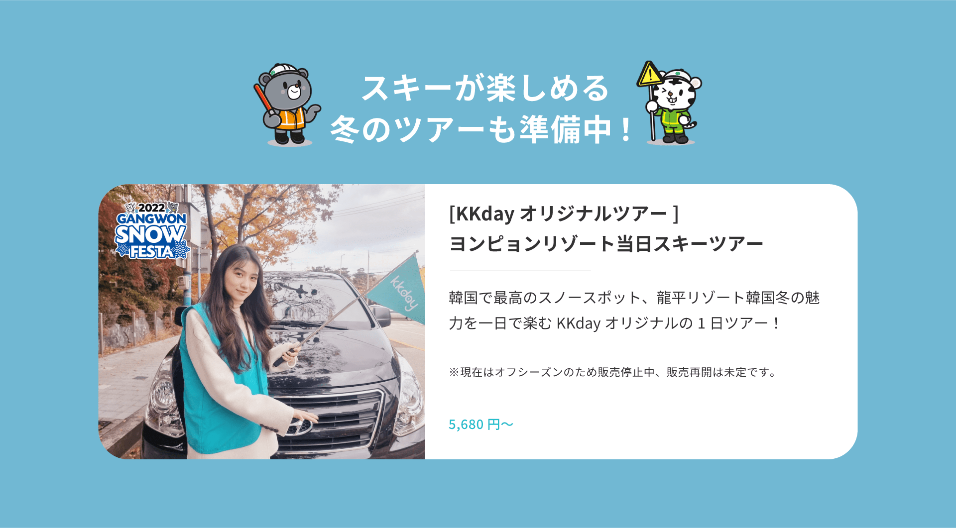 KKdayでは江原道の旅を楽しめるアクティビティ商品をご用意しています。 今後もどんどん追加予定!江原道を旅する時は、KKdayをチェックしてみてください♪