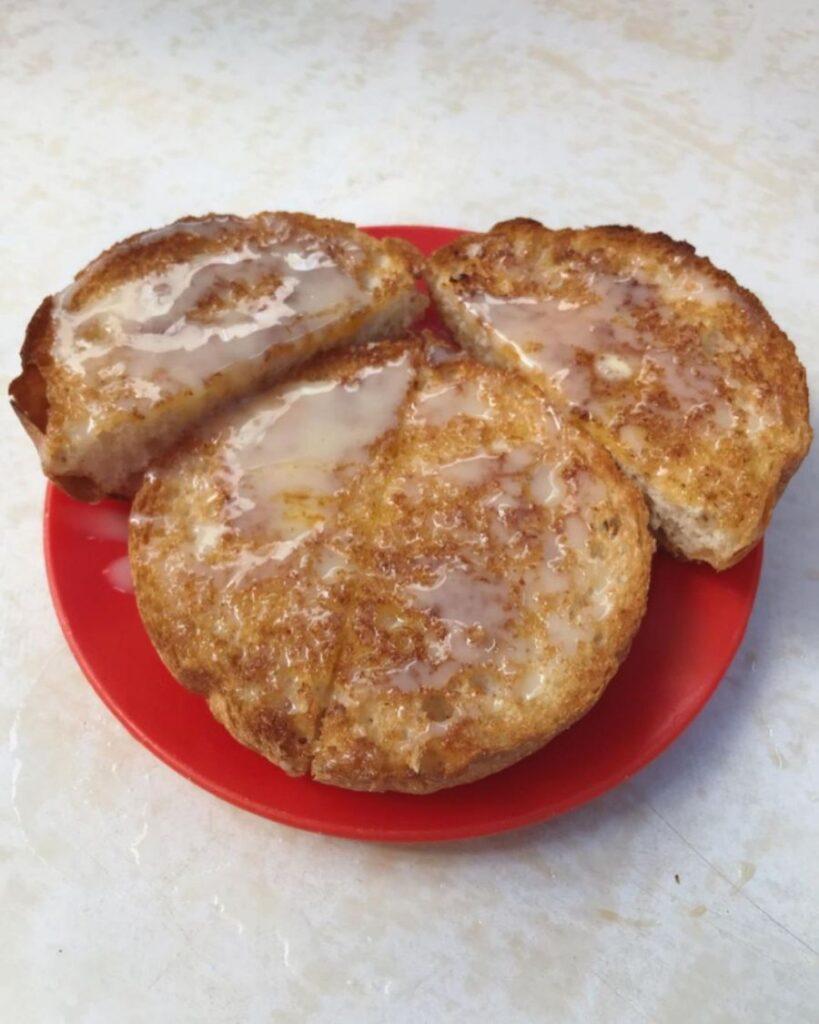 싱흥유엔에 방문했다면 크리스피 번과 동윤영도 함께 주문해 보자. 바삭하게 구워진 번 위에 연유를 발라 낸 크리스피 번과 홍콩식 밀크티 동윤영.