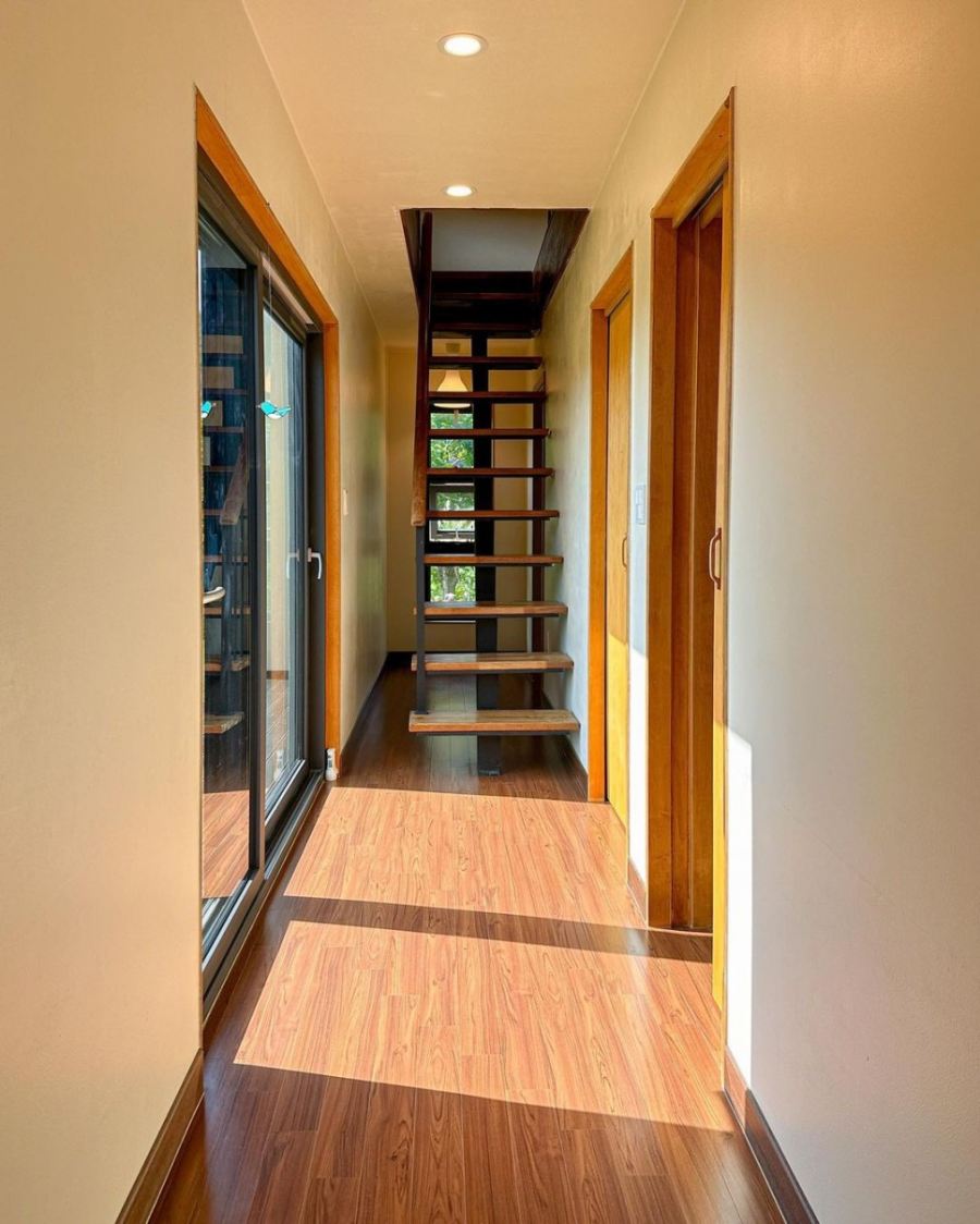 큰 창을 통해 오랜 시간 집 안 깊숙한 곳까지 빛이 들기에 하루 종일 따뜻하면서도 포근한 정취를 느낄 수 있게 한다.