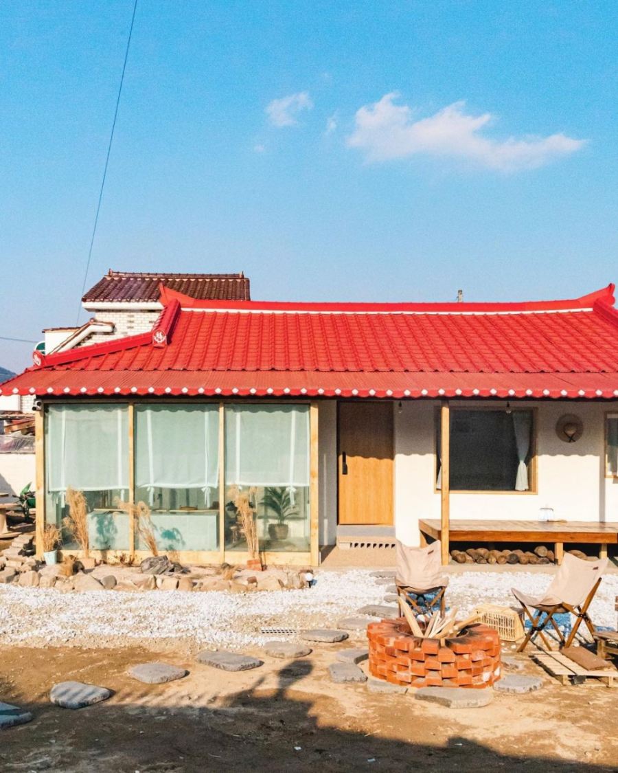 마지막으로 소개할 곳은 충북 옥천에 있는 강청스테이다. 붉은색의 기와지붕이 인상적인 한옥 숙소 강청스테이.
