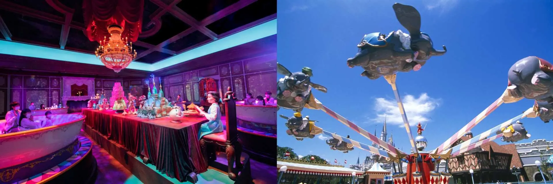 도쿄 디즈니랜드는 판타지랜드, 투모로우랜드 등 상징적인 구역과 함께 좀 더 넓은 가족 관객을 위한 어트랙션을 갖춘, 다른 디즈니 성 테마 파크와 유사한 고전적인 동화 테마를 구현합니다. 반면 도쿄 디즈니씨는 신화와 바다의 전설에서 영감을 받은 독특하고 세련된 테마를 자랑하며, 미스터리 아일랜드, 아라비안 코스트, 아메리칸 워터프런트와 같은 독자적인 구역을 통해 좀 더 모험적인 놀이기구와 정교한 식사를 즐길 수 있는 연령대가 높은 방문객에게 어필합니다.