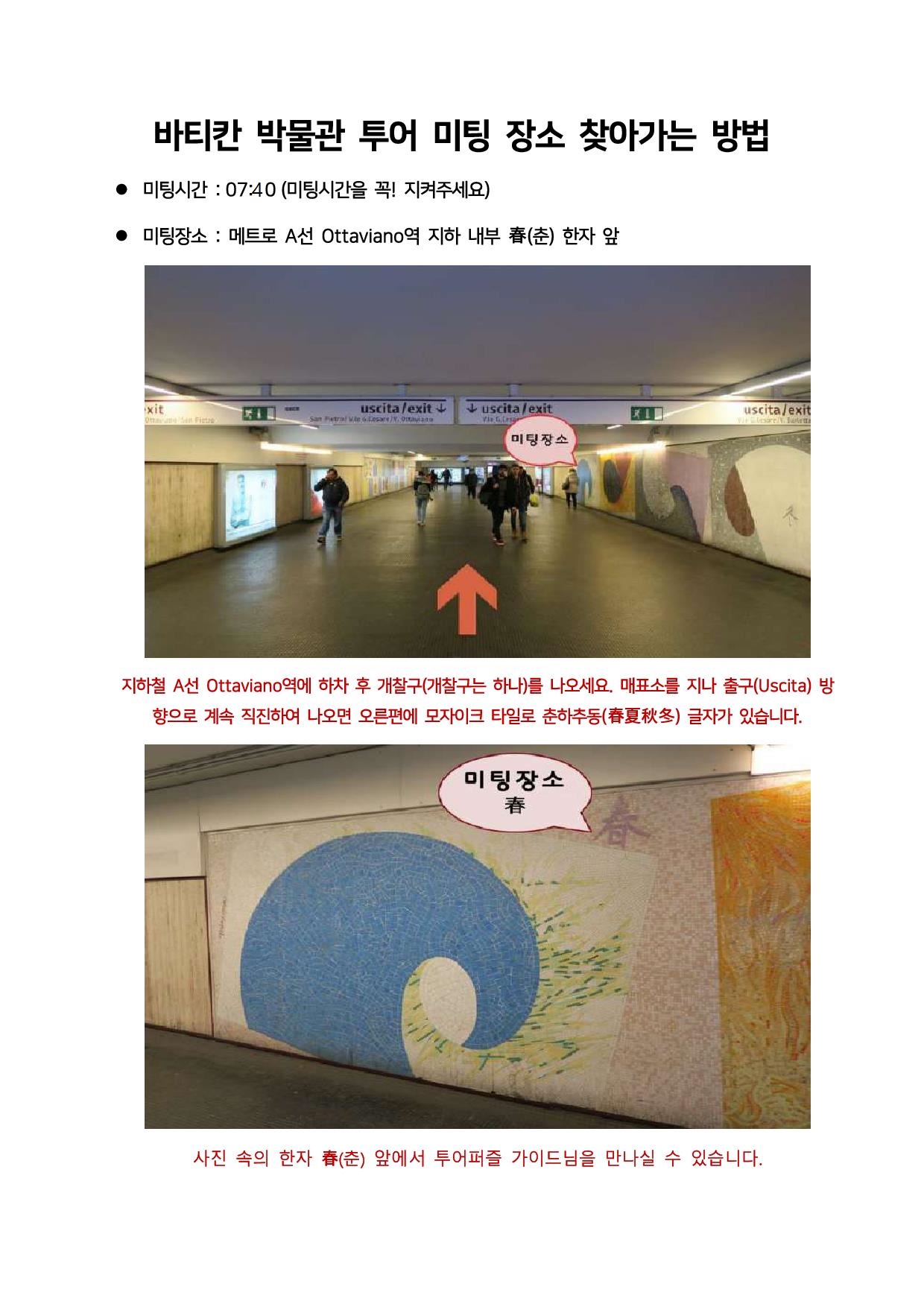 매주 수요일은 오전 교황님 광장미사(베드로 성당 12:30-14:00 이후 오픈) 때문에 투어 종료가 늦어질 수 있습니다.