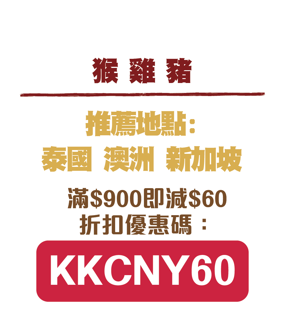 滿$900即减$60折扣優惠碼:KKCNY60