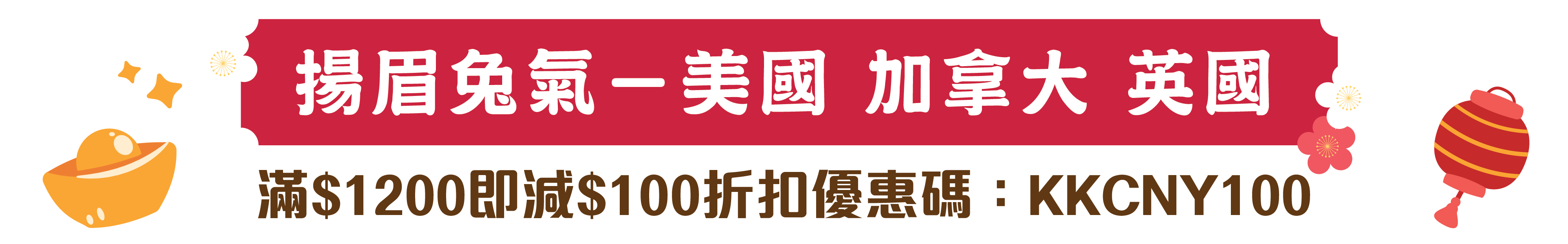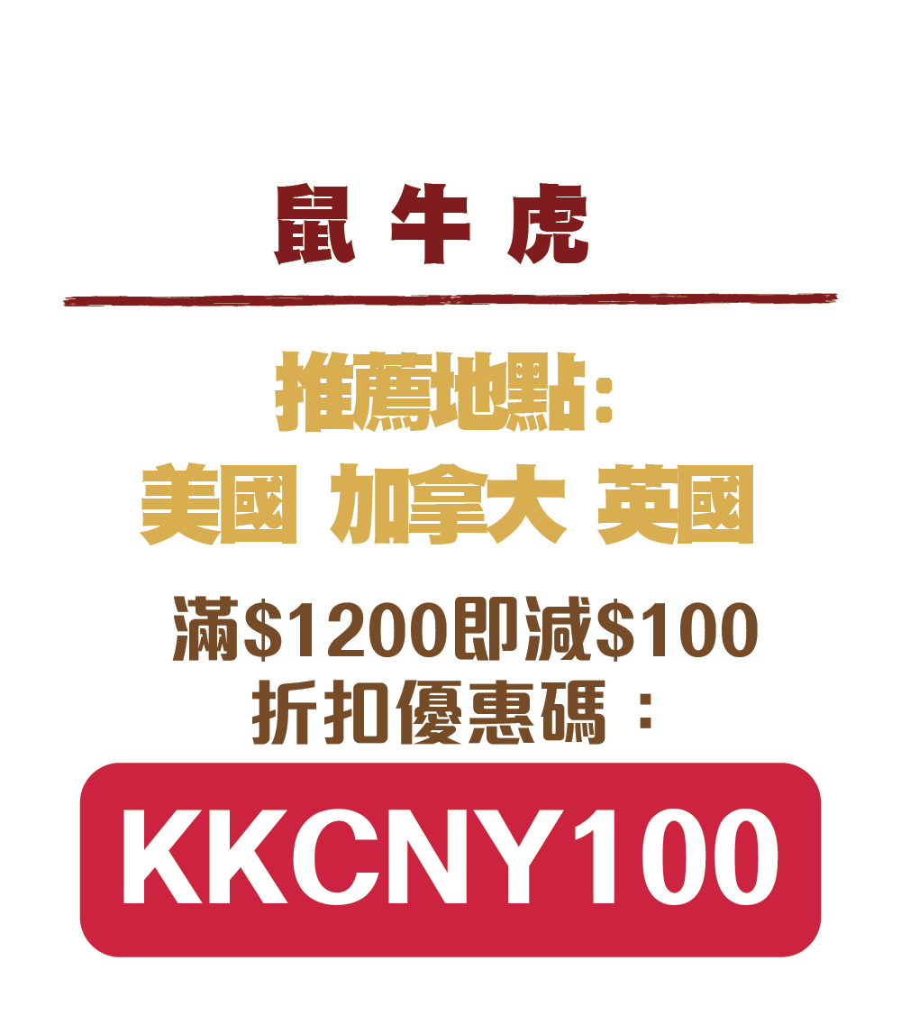 滿$1200即减$100折扣優惠碼:KKCNY100