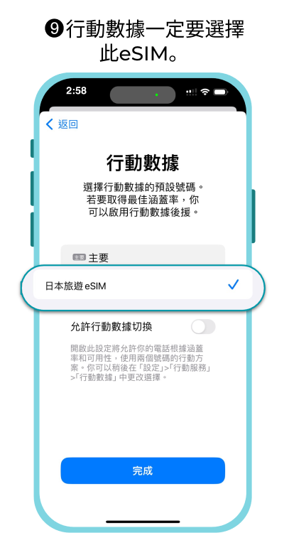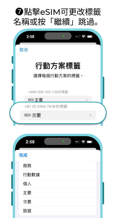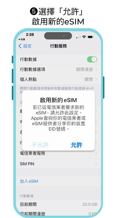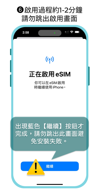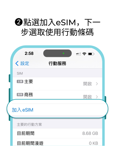 ⚠安裝eSIM前請先更新至最新版本iOS,舊版iOS使用相機掃描eSIM QR code 可能會失敗,需手動輸入eSIM資訊啟用。