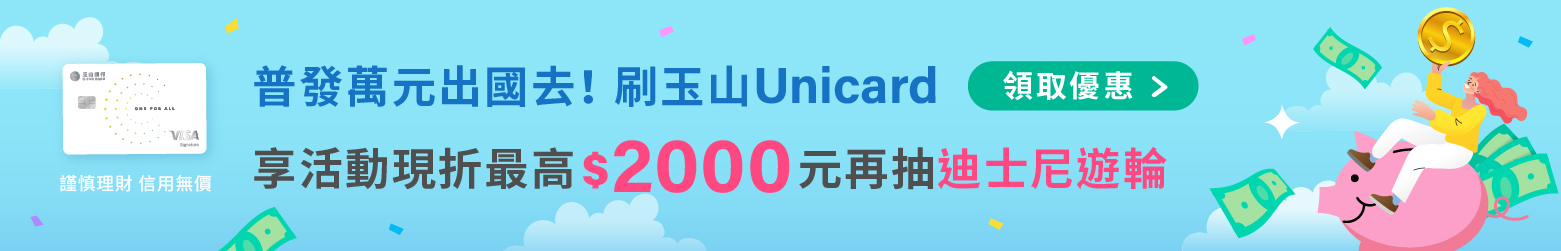 【玉山國民旅遊卡】3 月全球商品滿 $2,000 折 $300