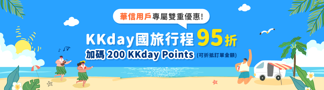 【滿3,000送300】此折扣碼單筆金額滿3,000可使用,限量提供用完為止,適用指定商品請參考飯店優惠活動頁面(https://www.kkday.com/zh-tw/promo/kkhotel ) 此折扣碼僅限台灣會員使用。每會員可使用2次。折扣碼不得轉售、轉讓。行程一旦兌換完畢後,不得更改出發時間。 KKday 折扣碼優惠金額於結帳時輸入專屬折扣碼則可當下折抵。 若有訂單付款失敗、訂單取消、退貨、換貨等情況,恕不符合活動資格。 會員保證所提供之會員資訊(包含但不限於姓名、email等)、訂購人資料、訂單聯絡人資料應正確真實,且未冒用或盜用任何第三人之資料;若前述會員資訊有任何虛偽不實之情事,KKday有權終止會員之資格,並不受理會員之交易。 如會員經 KKday 判定為同一人申請多個會員帳號參與本活動, KKday 將終止該會員參與本活動及往後所有活動、計畫、促銷的權利,並收回本活動的所有優惠。 此折扣碼不得要求兌換等值現金或其他對價商品,亦不得與其他優惠同時使用,或不當使用優惠,若有惡意不當使用之情形,KKday保有立即終止交易之權利。 商品頁面顯示的價格可能因匯率與季節因素變動,請以實際訂購時的結帳金額為準。 為履行您與 KKday 間公務及契約相關事項之目的,KKday 需蒐集您的個人資料。有關您個人的資料的蒐集、處理以及利用之詳細規定,請於 KKday 官網查詢。