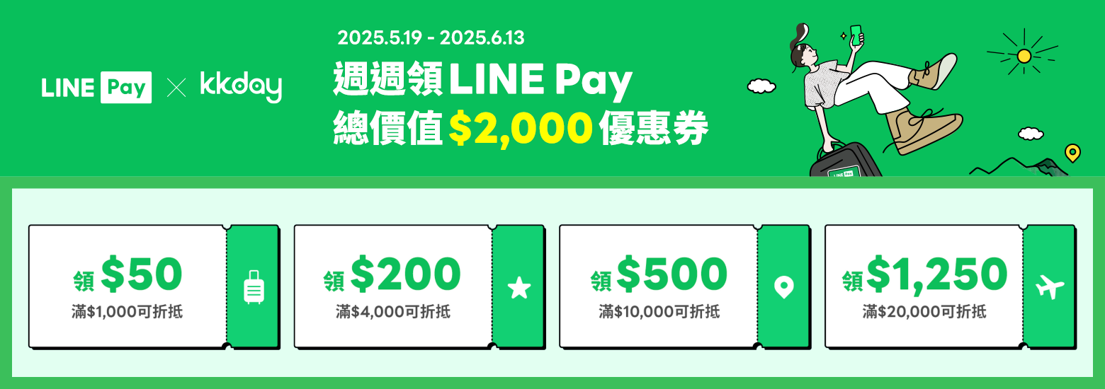 LINE Pay 及 KKday 保留隨時修改、變更、暫停及終止本活動的權利,並得僅以本活動頁面更新調整後內容,不另行通知。